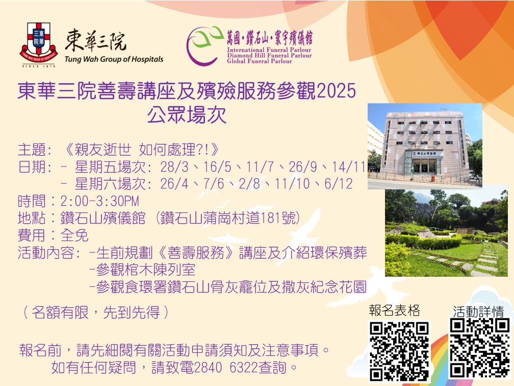 【東華三院善壽講座及殯殮服務參觀2026-公眾場次 現可網上報名參加】